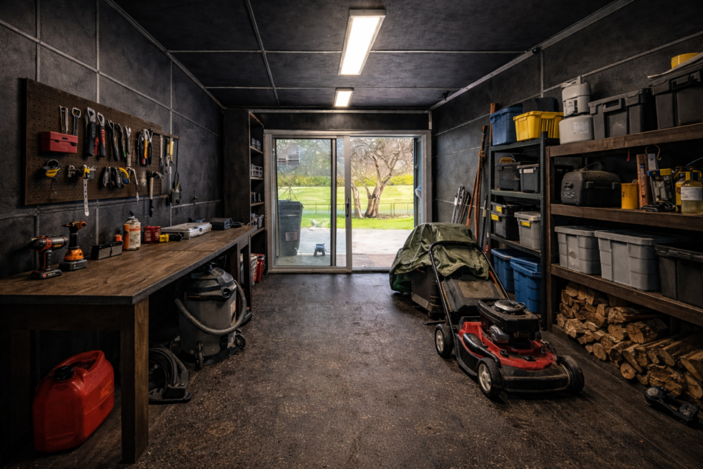 Inside, container shed spaces are designed for versatility and efficiency. Open layouts allow for easy storage of large items, tools, and equipment, while optional shelving, electrical access, and lighting can be added for increased functionality. Flooring options are selected for durability, making the space suitable for workshops, lawn equipment, or organized storage systems.